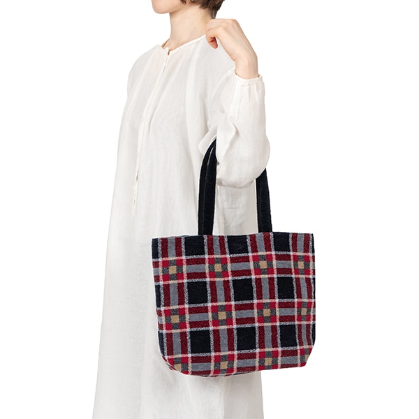 肩に掛けやすく長めの持ち手と、広めのマチが特徴です。