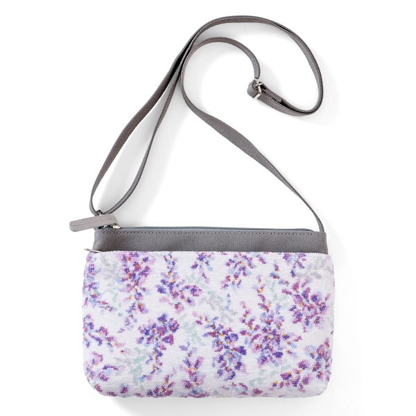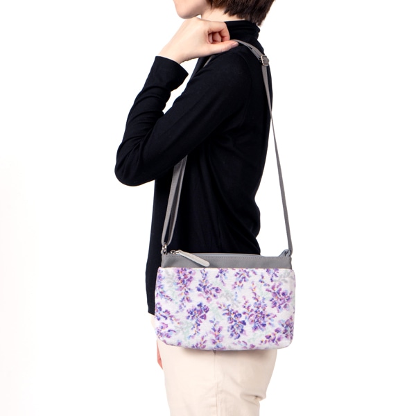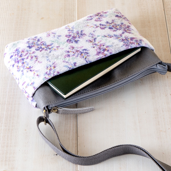 帆布生地とシェニールの組み合わせで縦型のショルダー648よりも小ぶりなデザインは、カジュアルなお出かけや、ご旅行におすすめです。