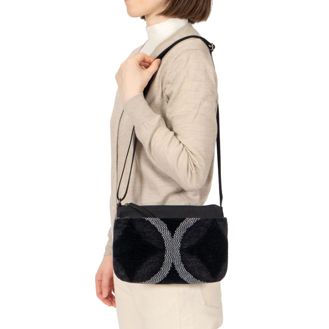 帆布生地とシェニールの組み合わせで、以前の縦型のショルダー648よりも小ぶりなデザイン。カジュアルなお出かけや、ご旅行におすすめです。