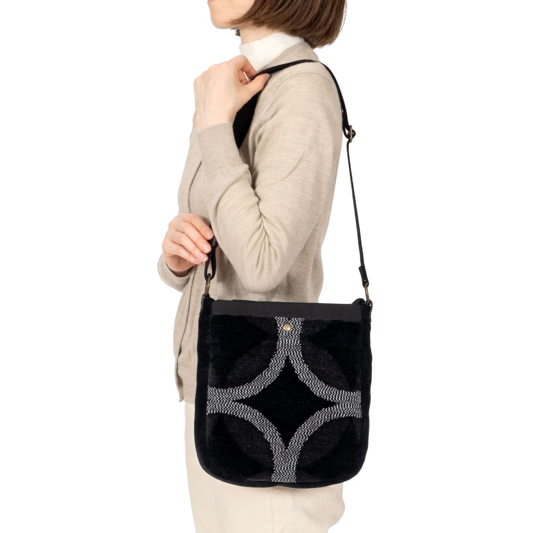 出し入れしやすいあおりポケットが便利なショルダーバッグ。