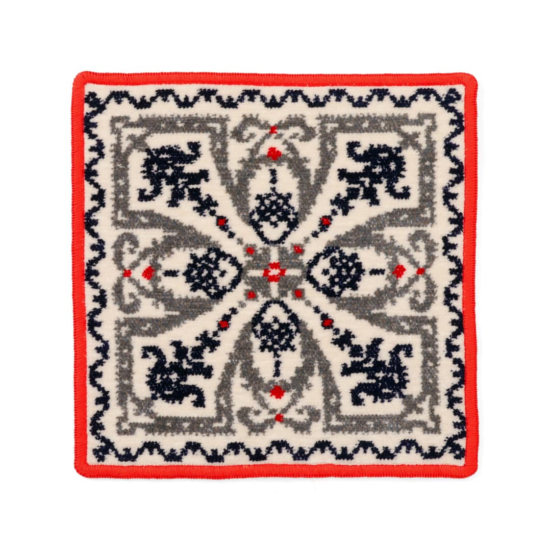 ウィーンの歴史的建造物に見られるシンメトリーで格調高いモチーフに、クリスマスをイメージした赤と幾何学的な民族調のエッセンスを加えたデザインです。