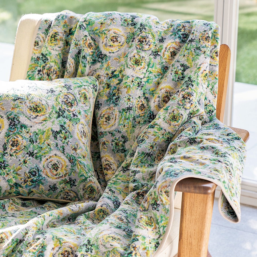 ソファーやベッドに掛ける長方形のインテリアクロス。綿100%の優しい肌触りはスローケットとしてもお使い頂けます。