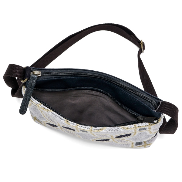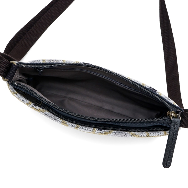 帆布生地とシェニールの組み合わせで軽く小ぶりなデザイン。カジュアルなお出かけや、ご旅行におすすめです。