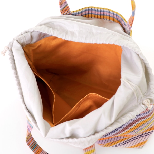 開口部が巾着型なので荷物こぼれの心配がありません。