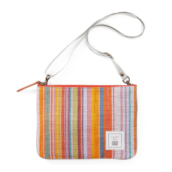 特殊な織機で織り上げられる22色のいろとりどりの縞模様。