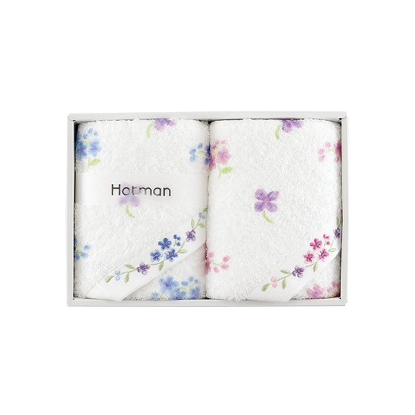 可愛らしい小花を一面にちりばめたシリーズ。やわらかな風合いをお楽しみいただけます。手や顔を拭くのに便利なハンドタオル2枚セット。