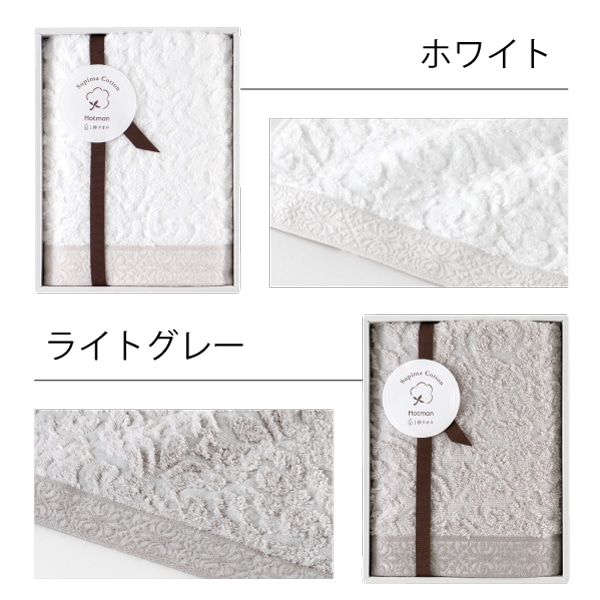 ヨーロッパ建築のレリーフをイメージした模様をジャカード織りで表現しました。お部屋の雰囲気に合わせやすい上品で落ち着いた色のタオルです。スーピマ綿糸をゆったりと織り、使いやすさを追求しました。