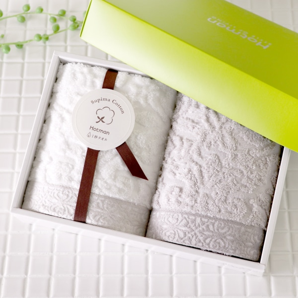 ハンドタオル(38×80cm)ホワイト×1枚、ライトグレー×1枚