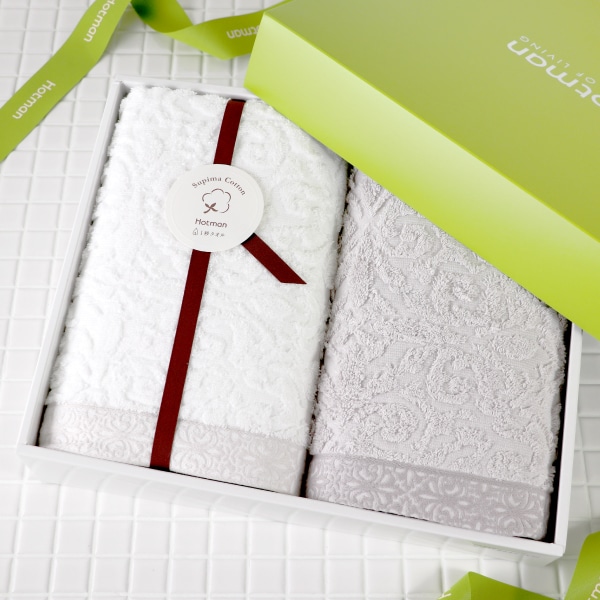 バスタオル(62×135cm)ホワイト×1枚、ライトグレー×1枚