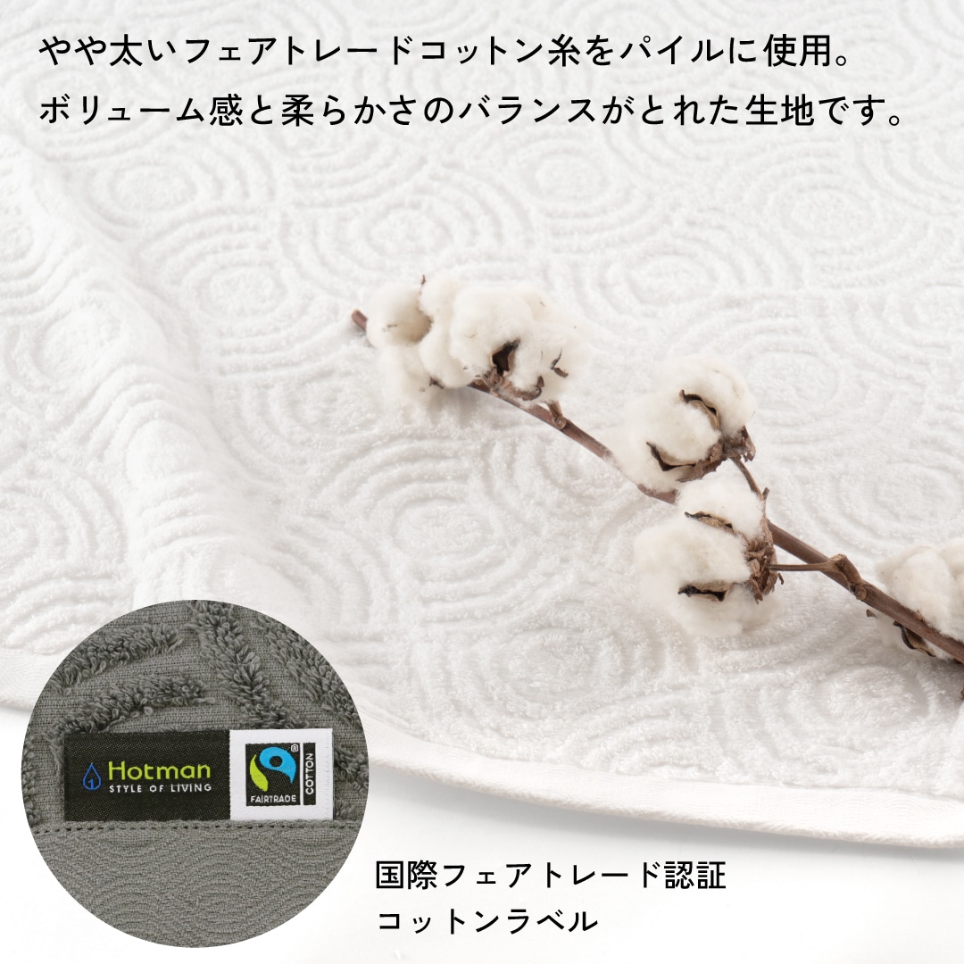 ホットマンはこの活動に賛同し、日本で初めて国際フェアトレード認証されたフェアトレードコットンタオルの製造・販売に取り組みました。